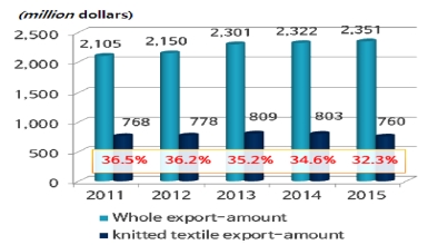 Textile & clothes export-import amount in 2015(Unit: million dollars)