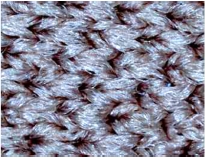 본 연구에 선정된 의료용 압박스타킹은 가장 많이 판매되고 있는 압박스타킹으로 발목기준 압력은 20-30mmHg 범위에 해당된다. 모든 압박스타킹의 섬유조성은 나일론과 폴리우레탄으로 같았으며 나일론은 60~70%, 폴리우레탄은 30~35% 범위내의 혼용률을 나타내었다. 실험에서 사용된 의료용 압박스타킹의 특성을 Table 1에 제시하였다. Table 2는 고해상도 실체 형광현미경(HR-SFM)을 이용하여 발목, 종아리, 허벅지의 조직을 16배로 확대하여 살펴보았다.