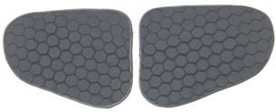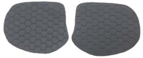 낙상충격 프로텍트 패드를 위한 충격흡수용 소재로 폼과 폴리머젤을 사용하였다. 폼 소재는 선행연구(Park et al., 2016)의 물성평가 및 충격흡수 성능평가에서 우수한 것으로 나타난 CR(Chloroprene rubber)폼 1종과 EPDM(Ethylene Propylene Diene Monomer)폼 1종을 선정하였으며, 소재의 물리적 특성은 Table 2와 같다. 폼 소재는 조각형 패드 제작을 위해 5mm 두께의 시트형 폼을 한 변의 길이가 15mm인 정육각형으로 잘라 Fig. 2와 같이 가공하였다.
