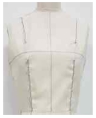 실험복 제작을 위한 실험포 물성은 Table 2와 같으며, 머슬린을 준비하여 경·위사가 직교하도록 올 상태를 바르게 다림질하여 수평과 수직 기준선을 그어준 후 다음과 같이 제작하였다. 먼저, 더미에 수직·수평선을 핀으로 고정한 후 각 교재에서 제시하는 단계별 입체재단을 실시하고 마킹을 한 후, 완성선과 시접선을 정리하여 패턴을 완성하였다.