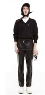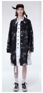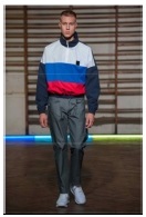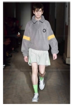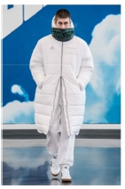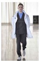기존의 청년문화와 비교했을 때 현대 유스컬처와의 가장 큰 차이점은 ‘실용성 및 현실성의 중시’이다. 허례허식이 제거된 현대의 시대상을 반영하듯 현재의 청년 세대들은 실용적이며 현실적인 패션을 선호한다(Kim, 2017a). 두 디자이너의 작품에도 이러한 특성들을 볼 수 있는데, pic. 46과 47에서 볼 수 있듯이 일상적인 아이템을 활용한 스트리트 패션과 트랙수트, 트레이닝 팬츠, 롱패딩, 스니커즈 등 기능성 소재의 스포츠 웨어를 착용한 스타일이 자주 등장하고 있다. 또한 pic. 48과 49에서처럼 레인코트, 윈드브레이커 및 패딩 점퍼, 아노락, 코튼 소재의 트레이닝 복, 후드 티셔츠, 트랙수트, 레깅스 등의 아이템을 매치한 에슬레저룩이 다수 나타났다. 이는 스포티즘 트렌드의 영향을 받으면서, 의식적으로 잘 차려입기보다 신경 쓰지 않은 듯한 편안하고 일상적인 옷차림을 선호하는 청년 세대의 현실적인 가치관이 반영된 것이다.