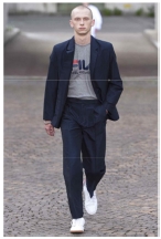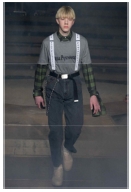기성세대와는 집단적 경계를 형성하고 젊은이들만의 정체성과 가치관을 표현하기 위한 ‘집단적 동조성’이라는 특성을 볼 수 있다. 청년 세대들은 다른 세대 집단과의 차별성을 강조하며 자신들만의 개성을 끊임없이 새로운 방식으로 창조해 내고자 하는 특성이 있다. Pic. 38과 39를 보면, 루브친스키의 2018 F/W 컬렉션에서는 버버리 브랜드와의 협업을 통해 학생의 이미지를 상징하는 프레피룩 스타일의 더플코트를 오버사이즈로 재해석하였고, 힙합 장르에서 자주 등장하는 박시한 핏의 좌우 비대칭 체크무늬 셔츠 등의 아이템을 선보임으로써 기존 버버리가 가진 클래식한 이미지를 젊은 감성으로 탈바꿈시켰다. 이뿐만 아니라 다른 컬렉션에서도 수차례 쇼트팬츠, 데님 소재, 유아적 컬러, 빅 로고, 프린팅 등을 사용하는 아이템들을 등장시켜 젊은이들의 세대적 정체성을 나타냈다. 또한 이러한 아이템 자체뿐만 아니라 pic. 40, 41과 같이 착장 방식에 있어서도 유스컬처의 특성이 드러나는데, 맨투맨, 후드 티셔츠, 스포츠웨어, 스니커즈 등의 캐주얼 아이템과 수트, 자켓, 코트 등의 포멀 아이템과의 믹스매치를 통해 형식의 경계를 무너뜨리고자 하는 청년들의 사고방식을 표현하였다.