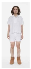 아베티샨 작품의 형태적인 측면을 보면 루브친스키 작품과 마찬가지로 루즈 핏, 오버사이즈 실루엣이 많이 나타났다. Pic. 19와 pic. 20에 나타나는 상하의 의상의 실루엣을 보면 인체보다 과장되고 확대됨으로써 실제 신체의 라인이 그대로 드러나지 않는 것을 알 수 있다. 상의의 소매 및 몸통 부분, 그리고 마찬가지로 루즈 핏, 오버사이즈 실루엣이 많이 나타났다. Pic. 19와 pic. 20에 나타나는 상하의 의상의 실루엣을 보면 인체보다 과장되고 확대됨으로써 실제 신체의 라인이 그대로 드러나지 않는 것을 알 수 있다. 상의의 소매 및 몸통 부분, 그리고 하의로 착용한 팬츠의 폭 모두 넓은 와이드 핏으로 충분한 여유분을 주어 특정한 형식에 구속되지 않고, 착용자의 자유로움과 활동성을 우선시하였다. 또한 최근의 스포티즘 및 고프코어 등과 같은 트렌드 경향을 반영하면서, 격식보다는 자신들의 취향과 의견을 더 중시하는 청년들의 신선한 패션 스타일을 강조하였다.