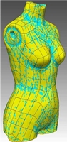 Creating the new design line with 3D mesh sketch using mean curvature and surface from optimized mesh on the 3D scanned original body