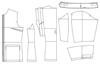 1. 1차 패턴 개발: 선행연구(Han & Han, 2019)의 현 여군 방한복 내·외피에 대한 착용실태 설문조사 및 대표피험자에 대한 치수 및 동작적합성 평가 결과에서 도출된 개선안을 적용하여 방한복 상의 내 · 외피 1차 패턴을 개발하였다. 내피에서는 선행연구에서의 소매길이가 짧다는 의견과 밑단둘레가 작다는 의견을 반영하여 본 부위를 늘였으며, 어깨너비, 가슴둘레가 크다는 결과를 반영하여 이 부분은 줄였다. 칼라높이는 불편함이 제기되었지만 보온성이 떨어질 수 있으므로 현재 높이는 그대로 유지하되, 칼라 앞 부위의 불편을 개선하기 위해 칼라 앞중심 높이만 낮추었다. 팔을 드는 동작, 팔굽힘 동작들에서 진동 아래의 불편함을 해소하기 위해서 위해 팔꿈치 부분에 수평다트를 생성하여 입체가 되도록 하였다. 개발 내피에서는 여군의 체형을 반영하여 가슴다트를 삽입하였다.
