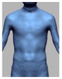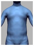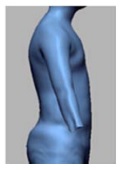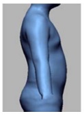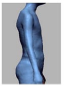 유형을 대표하는 체형을 선정하기 위하여 6차 Size Korea의 3차원 측정 자료 중 요인· 군집분석 결과를 활용하여 유형의 특징을 잘 나타내는 항목을 선정하였다. 항목의 수치가 유형의 평균값과 가장 근접한 3차원 형상을 검토하여, 시각적 관찰에 의해 각 유형의 체형특성을 가장 잘 반영하는 형상을 각 유형의 대표체형으로 추출하였다. Table 6은 Geomagic@ DesignTM X를 사용하여 추출된 형상을 전 처리 후 좌우 반전한 것이다.
