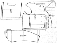 베스똥은 Fig. 18, 19와 같이 옆몸판과 스커트 부분이 없이 앞몸판, 뒤몸판으로 구성되어 있으며, 전체적으로 직선적인 박스형 구조를 이룬다. 또 앞몸판이 줄고 뒤몸판이 커졌으며, 길이가 줄고 허리선이 없어지는 등 큰 변화를 보인다. 앞몸판의 겨드랑이 아래부터 허리까지 다트가 있어 옆몸판을 분리하여 피팅시키는 기능을 대신하고 있는 것으로 사료된다.