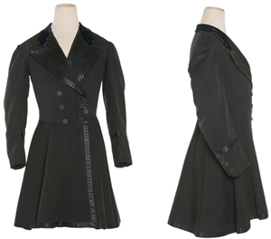 본 유물(Fig. 24)은 이전 유물보다 허리가 여유 있고 스커트의 플레어 분량이 줄어든 형태이다. 뒤트임 양쪽에 주름이 잡혀있고 삼각형의 버튼 탭 장식이 있으며, 앞여밈은 6개의 단추가 일렬로 달린 싱글 브레스티드(Single-breasted)로, 왼쪽 몸판이 오른쪽 몸판 위로 올라오도록 여미는 형태이다. 칼라는 V자형의 봉제선이 있어 주로 노치드 칼라(Notched collar)라고 명명하는 테일러드 칼라이며, 라펠이 깊지 않아 가슴선 위에 위치하고 있다. 라펠이 접힌 끝부터 허리선까지 같은 동일한 간격으로 6개의 단추가 위치한다. 소매 역시 전체적으로 여유가 있고 트임이나 커프스 없이 단순하다(Table 4).