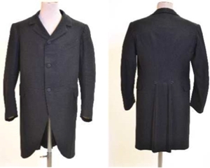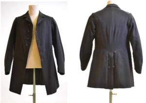 박물관 도록(MMT, 2013)에 의하면 본 유물은 19세기 후반 당시 평상복으로 널리 착용되었던 형태의 르뎅고뜨이다. 19세기 초중반 남성 상의가 피트 되는 X자형 실루엣인 것에 비해, 중후반에는 본 유물과 같이 스커트 길이가 조금 짧아지고 플레어 분량이 줄어들어 전체적으로 허리에 여유가 있는 직선적인 X자형 실루엣의 변화를 보인다. 1870년에 발간된 패션잡지 ‘The Taillor of Paris’의 판화(Fig. 25)에서는 길이가 짧아진 상의를, 1880년경 Léon Bonnat의 ‘Jules Grévy의 초상화’(Fig. 26)와 1870-80년경 E. Chesnay의 ‘Gustave Eiffel’의 사진(Fig. 27)에서 X자형 실루엣이 직선적이 된 것을 확인할 수 있다.