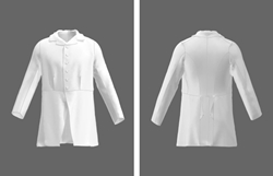 셋째, 소재 및 부자재를 적용하여 3D 가상착의 결과를 추가적으로 수정 보완한 후, 의복압 확인을 통해 맞음새를 검토하고 3D 가상착의 형상과 2D 연구패턴을 완성하였다. 소재 및 부자재는 유물과 같이 암홀둘레, 목둘레, 라펠에 심지 및 테이프 기능을 설정하였으며 어깨에 패드를 부착한 후 유물조사 결과로 얻은 원단의 소재 및 두께를 적용한 것이다.