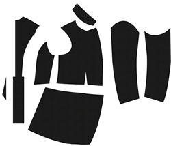 차이점은 형태구성을 위한 요소들로서, 먼저 허리를 밀착시키기 위해 55255.A는 바디스 외곽선의 형태를 곡선적으로 구성한데 비해 UF 77-3-23은 1개 UF 59-4-1은 2개의 다트를 사용하며 바디스 외곽선이 비교적 직선적이 된 것을 살펴볼 수 있다. 허리선 아래에 이어지는 앞스커트 패턴의 경우 55255.A > UF 77-3-23 > UF 59-4-1의 순서로 플레어 분량이 두드러지게 줄어들어 있는 것을 발견할 수 있다. 디테일 측면으로 55255.A는 라펠과 몸판이 따로 분리되어 있는 특징을 보인다.
