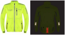 Leisure clothes with a night safety light-emitting function presented were composed of a Nightrider LED Women’s Cycling Jacket(PROVIZ, England) with LED bands attached to the sleeve regions and the bottom region to secure the visibility of the rider and a Women’s Beacon Jacket(Metier, England) with LED strips attached to the front shoulder region and the back bottom region to secure night visibility.