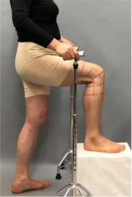 체표 변화에 관한 선행연구를 살펴보면, 신체 중 운동영역이 넓고 체표 변화가 큰 상반신을 중심으로 팔 동작에 따른 상반신 체표변화 연구(Jo, 1999; Koo & Rim, 1996; Lee & Rim, 1996; Kim et al., 2005)가 다수를 차지하였다. 전자섬유를 밀착 의복에 적용시키기 위해 인체 최대 굴곡 관절 부위를 중심으로 피부 최대변형률을 살펴본 연구(Jung et al., 2017)는 목, 손목, 팔꿈치, 무릎 등 굴곡이 많은 특정 관절 부위에 사각형과 가로, 세로 기준선을 그어서 수직 길이와 면적의 변형률을 살펴보았으나 가로방향의 변화율은 확인할 수 없었다. 하반신과 관련된 연구는 슬랙스 패턴의 설계를 위해 하지동작에 따른 체표선 변화를 파악한 연구(Cho, 2004a; Cho, 2004b), 싸이클 웨어 패턴개발을 위한 체표면 변화 연구(Kim & Kim, 2003)가 있으며, 3차원 다리보호대 모델링을 위한 피부길이 변화 연구(Lee et al., 2015) 등 하반신 동작을 고려한 의복이나 신체 보호대 개발을 위한 체표 변화 연구가 이루어졌다. 하지만 선행연구의 대부분이 20~30대를 연구대상자로 하고 있어 노인의 체형을 반영한 체표 변화에 관한 연구는 전무한 실정이다.
