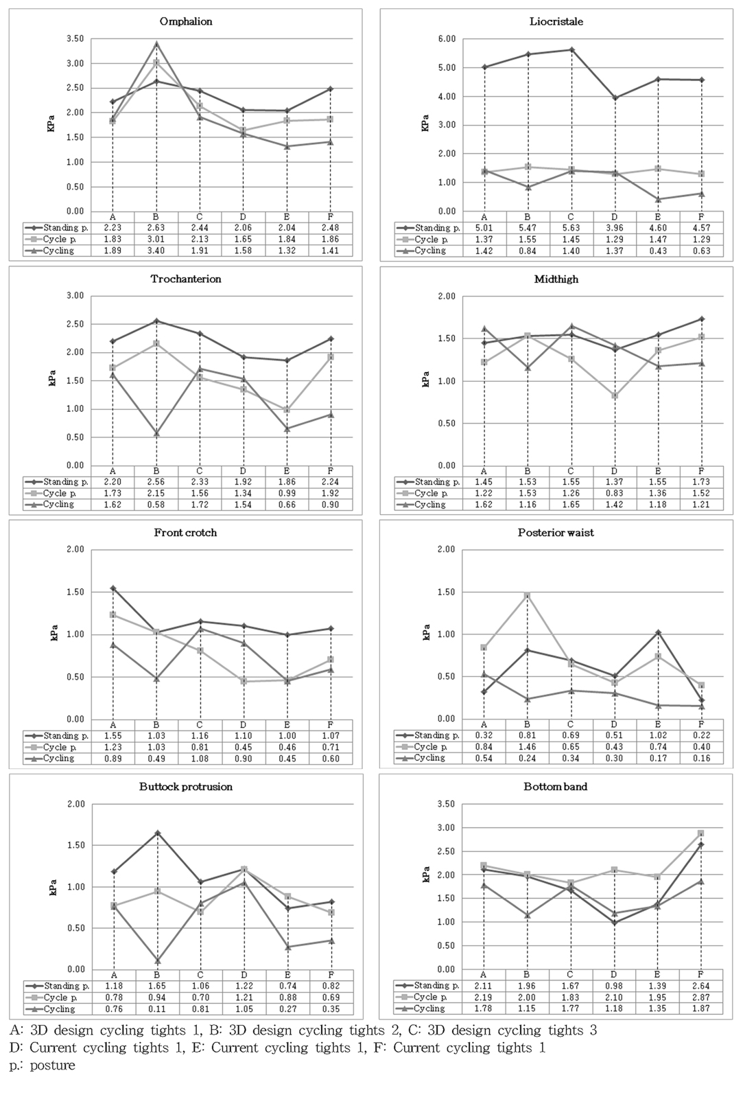 3.3. Results of cycling tights garment pressure and subjective evaluation