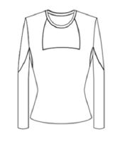 첫째, 냉감기능성 댄스스포츠 상의 제작은 의복표면온도를 반영하여 표면온도가 높았던 부위에 흡수속도가 높은 소재를 사용하여 디자인하였으며 패턴은 착의 보정작업과 외관평가 결과 및 중년 여성의 체형을 고려하여 실제 사이즈로 설계하였다. 그 결과 의복표면온도가 높았던 F1 부위를 포함하는 윗가슴둘레선부터 진동깊이선 4 cm 내려온 지점까지 요크를 구성하고 S1~S5 부위를 포함하는 옆패널(앞, 뒤)에 프린세스라인을 설계하였으며 B5 부위는 견갑골부위를 확장하여 디자인하였다.