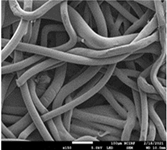 살균 처리 전과 살균 2회차, 살균 3회차를 마친 직후 촬영된 주사전자현미경 사진을 Table 3~5에 정리하였다(살균 1회차 촬영은 생략하였다). 살균 미처리 상태인 새 마스크의 전자현미경 사진 구조를 보면, N95 마스크의 스티프너 섬유가 KF94 스티프너에 비해 좀더 균일하게 배열되어 있음을 알 수 있다(Table 2). 살균 처리가 반복되면서 KF94 마스크의 스티프너 구조에서 변화가 두드러졌다(Table 3,4). 반면, KF94와 N95 마스크 모두 필터(MB PP)에서의 구조 변화는 크게 발견되지 않았다(Table 5). 살균 3회차의 경우 KF94 마스크 안쪽 단면 촬영 사진에서 구성 섬유들이 휘어지고, 끊어지거나, 검정색으로 변한 부분들이 발견되었다.
