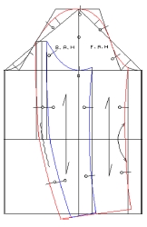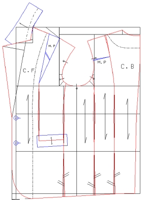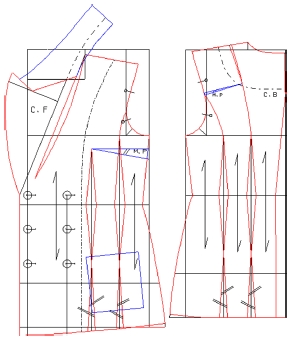 패턴 외곽선의 길이가 중력에 의해 늘어나지 않도록 고정하기 위하여 뒤목, 앞 어깨, 앞 라펠 도련선, 칼라 외곽선, 칼라 밴드 윗부분, 암홀선, 포켓 외곽에 심지테이프를 실제재킷에 사용한 것과 똑같이 적용하였다. 외곽선이 아닌 패턴 내부에 있는 H형 재킷의 라펠꺽임선은 심지테이프를 붙일 수 없었고, X형은 라펠꺾임선의 안쪽 다트 외곽선에 심지테이프를 적용하였다.