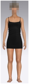 가상아바타에게 피험자의 인체계측 시 착용한 이너웨어와 유사한 의상을 제작하여 착의시켰다. 실제모델과 가상아바타의 치수는 Table 3이며, 실제모델과 가상아바타의 비교 사진은 Table 4와 같다.