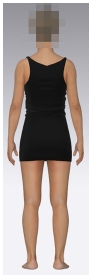 엉덩이둘레선은 참고사진과 실제착의 4.58, 실제착의와 가상착의가 3.92를 받았으나, 참고사진과 가상착의가 3.58의 점수를 받아 참고사진과 실제착의, 참고사진과 가상착의의 외관이 유사하지 않은 것으로 평가되었다. 밑단은 참고사진과 실제착의 4.25, 실제착의와 가상착의 3.50, 참고사진과 가상착의가 3.67로 외관이 유사하게 평가되었다.