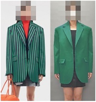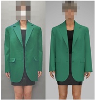 첫째, H형 파워숄더 재킷의 외관유사도 평가는 단추의 위치와 간격 항목을 제외한 다른 27개의 항목의 유사도에서 모두 높은 점수를 받았고, 참고사진과 실물재킷의 유사도, 실물재킷과 가상착의 재킷의 유사도, 참고사진과 가상재킷의 유사도 평가 점수의 평균에 유의미한 차이가 없어 세 가지의 비교가 유사한 것으로 나타났다. 참고 사진과 같이 H형 실루엣이며 어깨의 너비와 각도를 조절하여 어깨를 강조하면서 비교적 변형이 크지 않은 파워숄더 재킷은 가상착의가 잘 재현되었다.