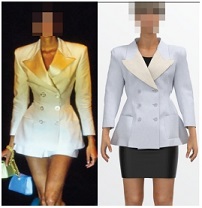 가상착의를 위해 어깨변형 파워숄더 재킷 디자인 중 H형 실루엣과 X형 실루엣의 재킷을 참고사진으로 선정하였다. 참고사진과 이를 재현한 실물재킷의 유사도, 실물재킷과 가상착의 재킷의 유사도 및 참고사진과 가상재킷의 유사도를 각각 평가하고 그 차이를 비교하였으며 연구결과는 다음과 같다.