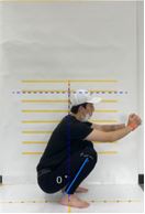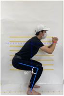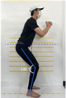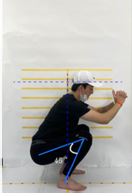 실험복은 한국 남성 M 사이즈, 여성 M사이즈로 제작되었고 피험자의 인체치수 측정값은 Table 2와 같다. 피험자들은 별도의 설비가 갖춰진 실험실에서 평가에 들어가기 전에 연구의 목적과 과정에 대해 충분히 설명을 듣고 자발적으로 참여의사를 밝혔다. 피험자는 실험실에 도착하여 10분 정도 안정을 취하고 난 후 센서가 부착된 실험복을 착용한 후 운동자세 모니터링을 위해 무릎 굽히기, 앉기 동작을 수행하였다. 착의 평가는 약 30분가량 소요되었다. 착용성 설문은 Fig. 2와 같이 무릎 굽히기, 앉기 동작을 하고 난후 스마트 레깅스의 기능을 체험하고 착용감을 문항별로 체크하는 방식으로 진행하였다.