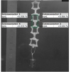 채우기 밀도별 REstrip 샘플의 auxetic 특성을 확인하고자, 포아송비를 측정하였다. 포아송비는 5분간 회복 시험이 진행되는 동안 영상을 촬영하여 얻어진 영상에서 RE 한 단위의 포아송비를 식 (1)으로 계산하였다. 영상은 디지털 카메라(VCXU-123M.K06, Gom, Germany)를 GOM Snap 2D 2020(Gom, Germany) 프로그램에 연결하여 촬영하였고, Gom Correlate 2020(Gom, Germany) 프로그램에서 영상을 변환하여 확인하였다. 측정 위치는 Fig. 4에 나타내었다.