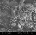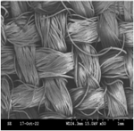 Photographs of Mechanical-Action test cloth, micrographs of stainless steel blended fabrics and SEM images of sebum soiled wool fabrics