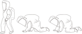 • ⑫ 양 손바닥과 양 무릎으로 6 m 거리를 다시 뒤로 기어온다.