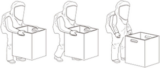 13 Pick up one standard wooden carrying box with open handles (approx. 10 kg; 50 × 60 × 74 cm high), move five steps, place it on the floor, and put it in a straight position (5 s). Lift the box on the floor again, take five steps, and put it back in place. Back in a standing position.