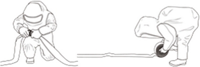 • ⑭ 두 개의 소방 호스를 바닥에 풀고, 두 개의 커플링을 연결하고 다시 분리한 후, 하나의 소방 호스를 다시 말아 놓는다.