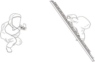 16 Go up to the fifth step of the ladder placed on the wall, pause for 5 seconds, and then descend again.
