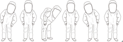 • [패턴/여유분] 다른 보호복에 비해 무거웠다/입을 때 지퍼가 너무 뻑뻑했다/ 기어 다니는 동작에서 무릎이 아팠다/ 양쪽 팔을 양쪽으로 교차해서 뻗기 힘들었다/아래팔 부분이 조이는 느낌이 들어 불편했다/ 어깨를 들어올릴 때 머리를 부딪혔다/무릎을 꿇는 동작에서 무릎이 아팠다