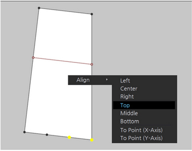 CLO에서는 점 선택 모드가 제공되지 않으므로 필요한 위치에 점을 추가한 후에 점 선택이 가능하다. 점을 추가하는 방법으로 ‘점추가/선분나누기’, ‘교차지점에 점 추가’ 등의 툴을 활용할 수 있다. 단, 기존 선분에 평행한 선분의 경우에는 ‘내부선분생성’ 툴을 이용하여 생성할 수 있으므로 별도의 점 생성이 요구되지 않는다. CLO에서는 ‘스마트 가이드’와 ‘스냅 기능’이 제공되어, 점 또는 선분을 이동하여 끝점에 맞추기 용이하다.