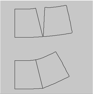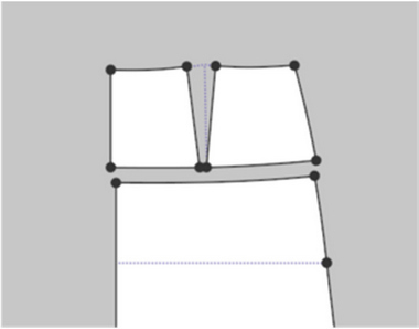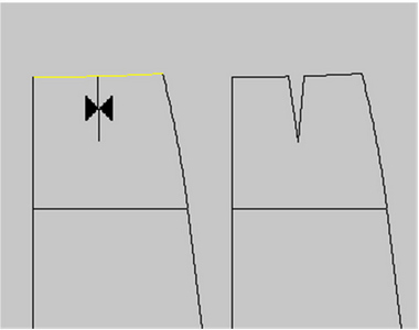 CLO에서는 ‘합치기’ 툴을 사용한다. ‘점/선수정’ 툴로 사이드 피스와 센터 피스의 다트선을 선택하고 합치기를 실행하면 분리되었던 요크 피스들이 한개의 패턴으로 합쳐진다. ‘합치기’ 툴은 마우스 오른쪽 버튼을 클릭하여 팝업메뉴에서 실행되며 두 선분의 길이가 다른 경우, ‘합치기’ 툴을 실행한 선분이 기준이 된다(Table 8).