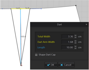 · A 'Dart' menu is provided to create a dart that matches the dart center line