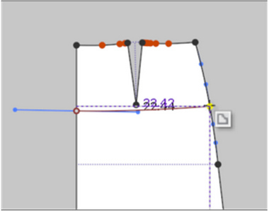 · In drafting the hemline of an A-line skirt circle, 'add perpendicular internal line' is inappropriate because the starting point of the right angle line is outside the baseline