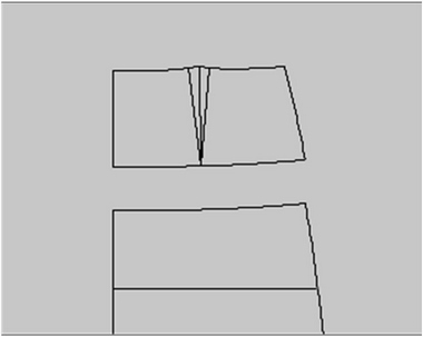 YUKA에서는 ‘이동회전’ 메뉴를 이용하여 요크 피스 중, 사이드 피스를 센터 피스에 부착한다. ‘이동회전’ 메뉴는 이동 전의 두 점을 이동 후의 두 점으로 회전과 이동을 동시에 수행하는 툴이다. ‘이동회전’ 메뉴를 이용하면 사이드 피스의 다트선이 센터 피스의 다트선에 겹치도록 회전, 이동된다. 메뉴를 이용한 후, 겹친 다트선을 삭제하고 요크의 허리선과 요크선을 각각 ‘선합치기’하여 요크 패턴을 완성한다(Table 8).