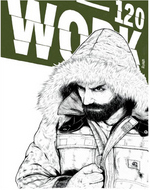 • At the top, the bold image embodies the strong WORK aesthetic, reflecting Carhartt's rugged and consistent impression with its rough lines and monochrome palette