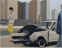 Table 11은 화용론적 차원의 분석 예시로 Image. 9는 마르코 클레 피쉬가 Carhartt의 고객 또는 잠재 고객을 대상으로 Carhartt를 광고하기 위해 그린 것으로 육체적 노동을 하는 근로자가 입는 작업복에 기반하고 있는 브랜드 아이덴티티를 강하게 노출하고 있다. 무겁고 강인한 느낌을 전달하여 Carhartt는 강하고 튼튼하여 작업장에서 적합하다는 브랜드 이미지를 관객에게 상징적으로 각인한다. 전통적으로 내구성과 기능성을 중시하고 있다는 이미지를 전달하며, 굵은 글씨체, 강한 이미지의 남성 모델을 통해 브랜드 아이덴티티를 전달하며, 거칠고 규칙적인 선의 사용과 한가지 색상만을 사용하는 것을 통해 Carhartt를 착용하는 남성의 강인한 모습과 강렬한 인상을 전달한다. 추위를 뚫고 가는 듯한 날카로운 눈매, 지퍼를 올리는 굵은 손, 검은 눈썹과 수염은 낚시, 사냥 등 야외 활동을 하는 사람들에게 실용적인 면을 보여주는 동시에 스트리트 패션 문화에도 적합한 스타일임을 상징적으로 표현하고 있다. Image. 10은 이송이 브랜드 WOOYOUNGMI를 위해 한 작업으로 일반적인 패션 일러스트레이션의 구성에서 벗어난 작품이다. 초현실적인 황량한 색채를 띠고 있는 도시가 강조되고 있으며, 옷을 입고 있는 모델은 한쪽에 배치되어 있고, 사고 난 차량이 중심에 있으며 그 뒤에는 노인 2명이 있다. 이를 통해 직설적 이기보다는 관념적인 느낌을 주며, 독특하고 모던한 브랜드 아이덴티티를 상징한다. 중앙에 사고가 난 차를 통해 관객이 상황을 상상하게 만들며 이러한 의문을 통해 관객이 직접 작가가 전달하고자 하는 상징을 찾게 만든다. 오른편에 지나가는 사람을 배치함으로써 인위적으로 브랜드를 강조하기보다는 자연스럽게 브랜드 감성과 스타일을 전달한다. 또한, 배경에 보이는 건물들의 직선과 주된 색상들은 WOOYOUNGMI의 현대적이고 세련된 스타일을 전달하며, 직선적인 실루엣과 시크한 감성을 경험할 수 있다. Image. 11은 Jiiakuann이 Tom Ford Men’s SS 2013 컬렉션을 FHM(중국 패션지)에 실은 작품이다. FHM을 읽는 남성들 사이에서 공유할 수 있는 사회문화적 배경을 바탕으로 잘 생기고 관능적인 남성이 되기 위한 스타일을 보여주고 있다. 매력적인 인체를 가진 여성을 배경으로 하고 좋은 차를 탄 멋진 남성은 전면에 배치함으로써 잡지를 읽는 중국 남성들에게 일러스트레이션에서 보이는 패션을 따라 입는다면 여성에게 멋지고 인기 있는 이상적인 남성이 될 것이라고 전달한다. 이 작품은 중국인 작가가 중국 남성을 대상으로 그린 것으로, 중국 남성 사이에서 이상적으로 생각하는 자동차, 패션스타일, 라이프 스타일 등이 미적 표현을 통해서 독자에게 전달되고 있다. Image. 12는 Jean-Philippe Delhomme이 GQ of The style guy 칼럼에 그린 작품이다. 오토바이를 타는 남성에게 가장 적합한 가방이란 제목으로 다양한 종류의 가방을 들고 오토바이를 타는 남성이 묘사되었다. 잡지에 실린 패션 일러스트레이션을 통해 작가는 특정 관객과 소통하고 있으며, 이들은 오토바이를 타는 사람이라는 공통된 사회문화적 배경을 공유하고 있다. 이를 바탕으로 미적 표현의 특수한 상징을 전달받을 수 있으며, 그들만의 라이프 스타일과 패션 스타일을 공유할 수 있다. 오토바이를 타는 라이프 스타일을 가진 독자들과 소통하며 오토바이 타기에 가장 적합한 가방은 무엇이며, 독자가 어떤 가방을 선택하는 것이 패셔너블한 남성으로 보일지 도와주는 장치이다.