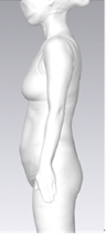 이후 군집 분석을 통해 중년 여성의 토르소 형태가 3개로 분류되었고 각 토르소 형태의 유형별 특징을 파악하기 위하여 35~54세 여성 전체와 유형별 11개의 요인별 항목들에 대한 분산분석 및 Duncan-test를 실시한 결과는 Table 1과 같다. 유형별 특징을 살펴보면, 유형 1은 등과 엉덩이가 가장 납작한 체형, 유형 2는 상체가 앞으로 기울고 등이 가장 돌출되었으며 배가 가장 덜 돌출되고 어깨가 쳐진 체형, 유형 3은 전체적으로 가장 통통하고 엉덩이가 돌출된 체형으로 나타났다. 본 연구는 3개 체형별 평균값에 해당되는 형상을 대표 3D 스캔으로 선정하였고 선정된 3D 인체형상의 치수를 패턴제작에 이용하였다.