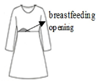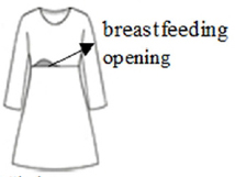 Furthermore, key features of nursing attire for easy breastfeeding included “appropriate breastfeeding opening size to facilitate breast exposure”, “coverage to prevent the lower body from being overly exposed”, and “adjustable designs to minimize breast exposure”.