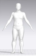 본 연구는 대학 교육용 패턴법을 제안하는 목적이므로 Korean Agency for Technology and Standards (2021b)의 제8차 Size Korea 3차원 형상 측정 조사 사업에 포함된 20대 여성 575명 중 BMI 정상 범위(18.5~22.9)에 속하고, Korean Agency for Technology and Standards (2019)의 KS K0051 성인 여성복의 치수 기준에서 보통 체형(N-체형)에 해당되는 대상자 중 키, 허리둘레, 엉덩이둘레, 젖가슴둘레, 팔길이, 몸무게 등의 항목이 평균값 ± 표준편차 범위 내에 포함되는 181명을 최종 분석 대상으로 선정하였다. 이후 최종 선정된 181명의 여성의 평균 신체 치수 항목별 수치 중, 표준편차 범위 내에서 평균값에 가장 근접한 3D 인체 스캔 데이터를 대표 모델로 선정하였다(Table 3). 해당 스캔 파일은 obj 포맷으로 변환한 후 CLO 3D 소프트웨어에 불러와, 참고 원형으로 선정된 3종의 패턴법에 따라 재킷 패턴을 제작하였다.
