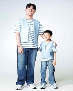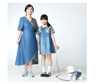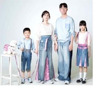 아브 드 레브(Arbre de Rêve®)는 ‘꿈나무’라는 뜻을 가진 국내 아동복 브랜드다. 2020년 국내 업사이클링 브랜드인 얼킨(ULKIN®)의 이동성 디자이너에 의해 아동복으로 새롭게 선보였다. 이 브랜드는 의류 생산과정에서 발생하는 환경오염을 줄이기 위해 친환경 유기농 면과 재활용 원단을 활용하며, 버려지는 재료를 최소화(minimal waste)하거나 제로화하는 제로웨이스트를 실천하고 있다(Kwak, 2023). 제시한 Fig. 6은 이를 준수한 패밀리룩 제품으로, 얼킨의 성인복 스트라이프 데님 트렌치코트를 아동복으로 축소한 미니미룩이다. 소재는 면 100%의 데님으로 세부 장식은 모두 제 원단으로 제작된 미니멀 웨이스트 상품이다(Lee, 2021). 이러한 스타일링은 시간이 지나도 기본적으로 변함이 없는 베이직한 디자인으로 가족이 함께 착용하면 우수한 퀄리티의 패밀리룩을 연출할 수 있다.