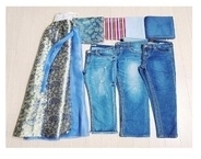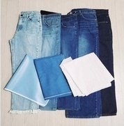 최종적으로 제작된 패밀리룩은 총 3세트, 10점(반려동물 의상 포함)으로 구성되었다. 작품 I은 4인 가족과 반려동물을 위한 베이직 디자인으로 친환경 및 업사이클링 패션의 특성을 반영하였고, 작품 II는 엄마와 딸, 반려동물을 위한 캐주얼 디자인으로 친환경 및 업사이클링 패션의 특성을 반영하였고, 작품 III은 아빠와 아들을 위한 유니크 디자인으로 친환경, 비건 및 업사이클링 패션의 특성을 반영하여 디자인하였다. 전체적으로 여유로운 스트레이트 실루엣을 중심으로 로엣지(raw edge), 프린징 등 폐부자재 디테일을 활용하였으며, 조절가능한 장식과 튼튼한 마감처리를 위해 바이어스 처리 등 세부적인 디테일을 추가하였다. 색상은 파스텔 핑크·블루와 데님의 연청·중청·진청 계열을 중심으로 사용하였다. 제작 전, 업사이클링 소재의 믹스 & 매치로 소재의 수축률을 감안하여 사전 침수를 통해 수축 후 사용하였다(Fig. 12). 본 연구에서 개발한 지속가능 패밀리룩의 디자인 컨셉을 정리하면 Table 3과 같다.