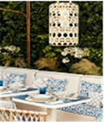 루이비통 팝업 레스토랑에서도 메뉴부터 매장 인테리어 곳곳에 브랜드를 연상시키는 로고와 심볼, 패턴을 사용하였다. 국내에서 진행된 루이비통의 팝업 레스토랑 ‘피에르 상 앳 루이비통(Pierre Sang at Louis Vuitton)’은 대리석 상판의 테이블부터 구릿빛 벽, 천장을 장식한 이색적인 모노그램 플라워로 연출되었다. Image 16의 루이비통 심볼의 디저트는 MZ세대를 통해 소셜미디어에 공유되었다(Shin, 2022). 프랑스 생트로페의 ‘아르노 동켈레 & 막심 프레데릭 앳 루이 비통(Arnaud Donckele & Maxime Frédéric at Louis Vuitton)’ 은 루이비통의 패턴을 활용하여 공간을 디자인하였다. Image 17의 블루와 화이트 타일 패턴의 레스토랑 인테리어는 루이비통의 ‘바이 더 풀(By the Pool)’ 리조트 컬렉션(Image 18)에서 영감을 얻었다(Lee, 2023). 블루와 화이트의 타일 인테리어는 해당 컬렉션의 시각적 언어를 반영한다.