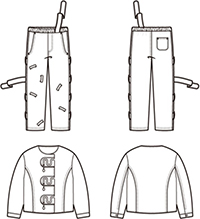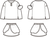 도식화 작업은 Adobe Illustrator 2025를 사용하여 2D 형태로 구현하였으며, 시제품 제작은 만 3-5세 유아의 신체 치수(산업통상자원부 국가기술표준원의 유아복의 치수 기준)에 따라 진행하였다.