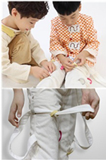 Kim and Kim(2023)은 단추 끼우기, 지퍼 잠그기, 신발 끈 묶기 등 유아가 손끝을 사용하여 놀이하도록 지도하는 가정 연계 교육을 진행하였다. 이처럼 유아의 발달에 기초한 의생활 지도를 통해 의복이 유아의 발달과 상호작용할 수 있음을 논의한 연구는 존재하나, 놀이하며 유아 발달을 기대할 수 있는 의복 디자인은 매우 한정적이며 일반적인 유아복 디자인에서는 의복놀이로 기대할 수 있는 발달 영역에 한계가 있다. 역할 놀이(role-playing)를 위한 의상 또한 역할 놀이의 몰입을 돕고 역할에 대한 이해를 쉽게 하여 유아의 발달에 도움이 되나, 비일상적이며 일회적 의복이다. 본 연구에서는 유아가 일상적으로 착용하는 의복을 바라보는 관점을 유아의 ‘놀이’를 지원하는 ‘교구’로 설정하여 교육적으로 도움이 되는 유아복 디자인을 제시하고자 하였다.