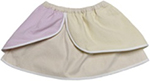 유아 개더 스커트의 기본형에 두 개의 패널이 덧대어진 스타일로 각 패널의 파이핑 안에 와이어를 삽입하여 유아가 패널을 구부리고 조작하면서 다양한 형태의 스커트를 만들고 놀이할 수 있도록 한 형태 중심 디자인이다. 스커트 기본형은 편안한 착용감의 Cotton 소재를 선택하였으며, 패널은 봉제의 용이성과 와이어 삽입 및 형태 조작을 고려하여 가볍고 탄탄한 Cotton Nylon 소재를 사용하였다. 기본형과 각 패널의 컬러는 유아의 시각적 즐거움을 고려하여 서로 다르게 선택하였으며, 와이어의 끝처리는 안전성을 고려하여 얇은 원단으로 한 번 더 감싸서 봉제 후 오비 E-band의 겉 방향에 함께 고정하고 바이어스의 여유분을 적게 하여 전체적으로 단단히 고정하였다. 놀이 교구의 요소와 관련하여서는 조작의 자유로움을 위해 와이어가 내장된 패널의 개더량을 충분히 주었고, 유아가 자유롭게 패널을 구부리며 다양한 예술 표현을 하는 과정에서 자연스럽게 소근육 발달을 기대할 수 있도록 디자인했다.