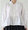 본 연구에서는 신한복 여자 장저고리 형태를 An(2020)의 연구를 토대로 기본형, 셔츠형, 블라우스형, 티셔츠형의 네 가지 유형으로 분류하였으며(Table 1), 신한복 여자 장저고리의 유형을 분석한 결과, 기본형(43.5%), 셔츠형(38.2%), 블라우스형(10.8%), 티셔츠형(7.5%) 순으로 나타났다(Image 1~Image 4). 특히, 기본형과 셔츠형의 빈도가 높게 나타난 것은 한복 특유의 요소를 유지하면서도 셔츠와 유사한 이미지의 일상복으로 편하게 착용하기 위함으로 보이며, 블라우스형과 티셔츠형의 생산 빈도는 비교적 낮았지만, 고름을 대신한 단추의 사용과 동정을 사용하지 않는 등 장저고리의 형태 범위를 확장하는 역할을 하였다.